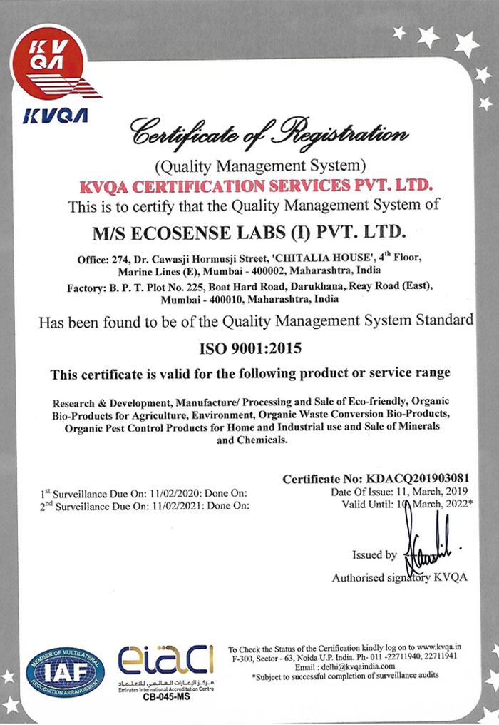 Ecosense Labs. (I) Pvt. Ltd., is an ISO 9001:2015 Certified Company which has been in the business of Research & Development and Product Manufacturing since 1996-97.